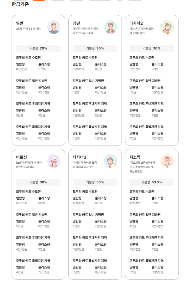 일반형 ,청년형, 다자녀2,3 , 어르신, 저소득층 등