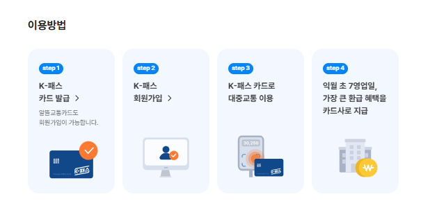 K-패스 이용방법은 우선 K-패스 카드 발급이후, K-패스 회원가입, 그리고